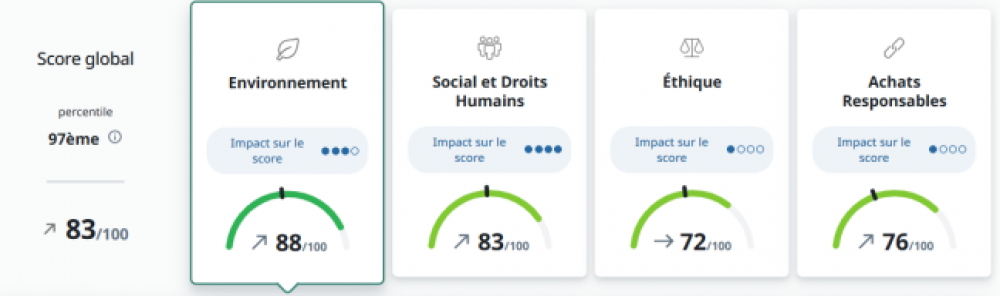 Le score global du Groupe a augmenté par rapport à 2024 grâce à la mise en place de politiques et mesures supplémentaires, et la publication plus détaillée du reporting RSE.